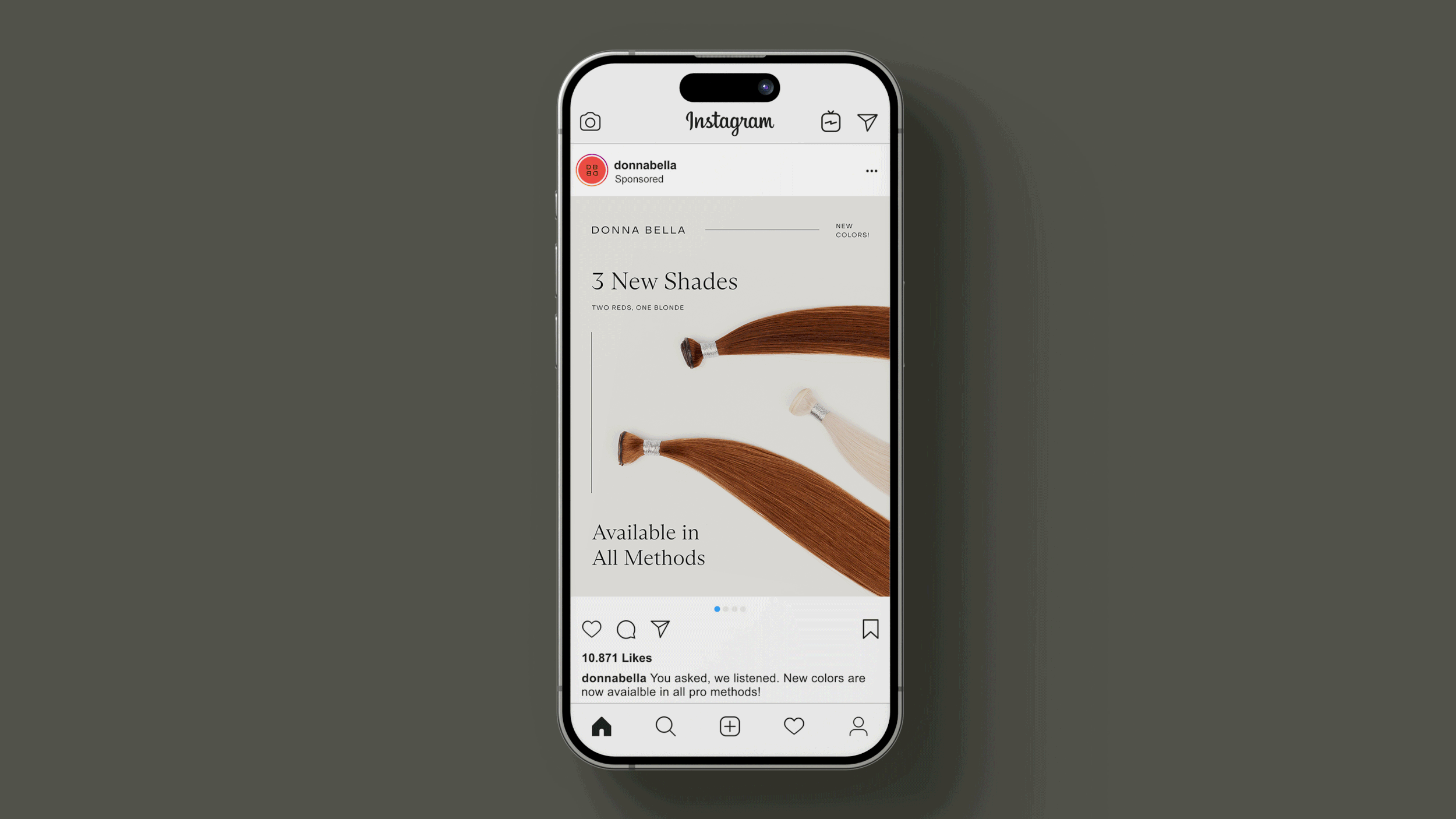 Define Donna Bella’s new visual language through the translation of the brand guide across digital paid advertisements.