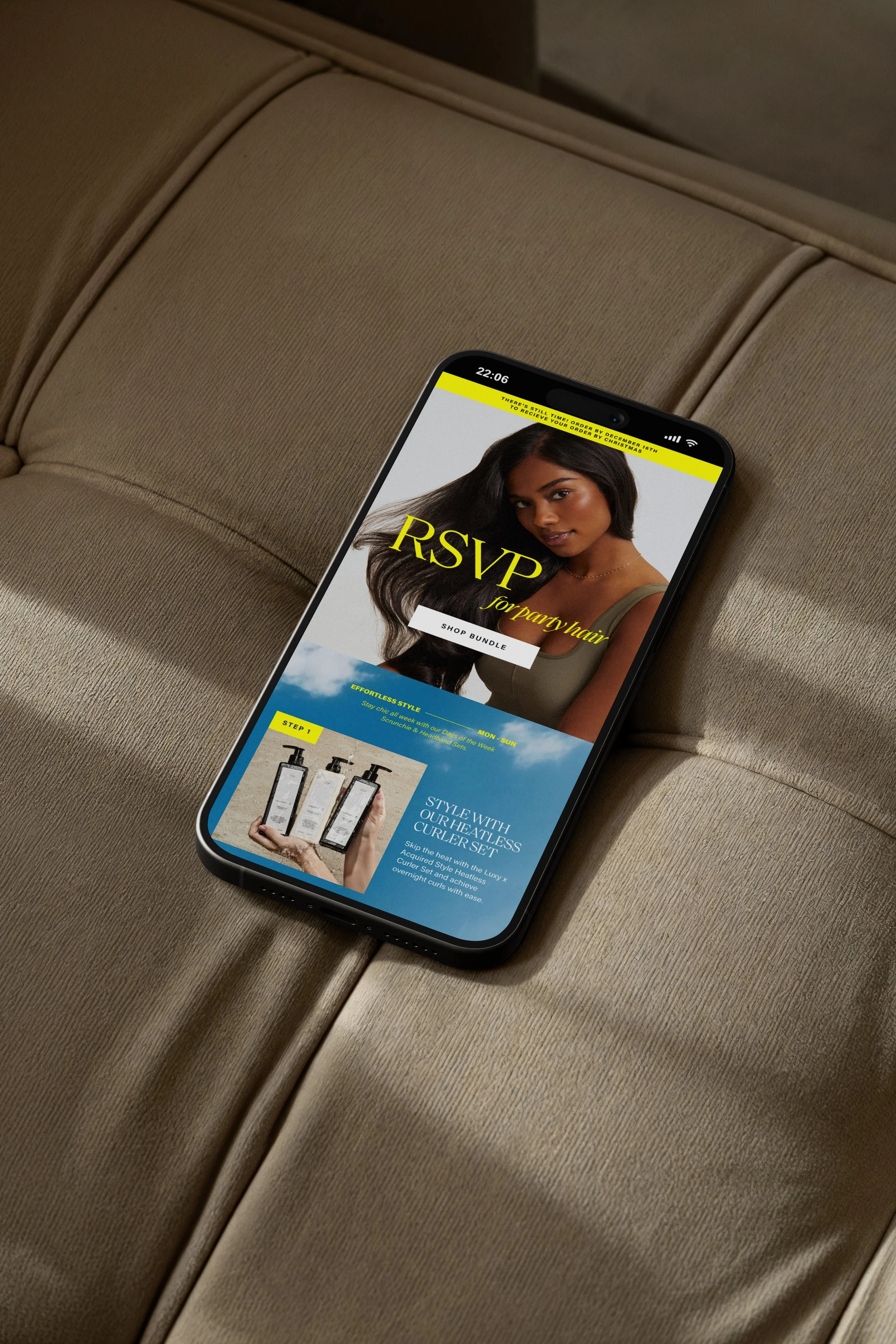 Luxy is the #1-rated ready-to-wear hair extensions brand worldwide, redefining hair extensions since 2010. This premium hair extension & accessories brand prioritizes sustainability and inclusivity through ethical sourcing and exists with the mission of empowering everyone to cultivate a sense of confidence, abundance, and play. This project showcases Luxy’s Holiday campaign, created with the goals of promoting the year-end sale and standing out among competition during the most highly saturated time of the year. The creative direction for this campaign introduced a new complimentary contrast color into the standard brand color palette- a bright yellow. This creative decision was made with the intention of differentiating from evergreen assets, making a bold an editorial design statement, and increasing brand awareness. This yellow tone is utilized consistently across assets, serving as a playful design accent that both highlights the sale and catches the customers eye- new and returning.